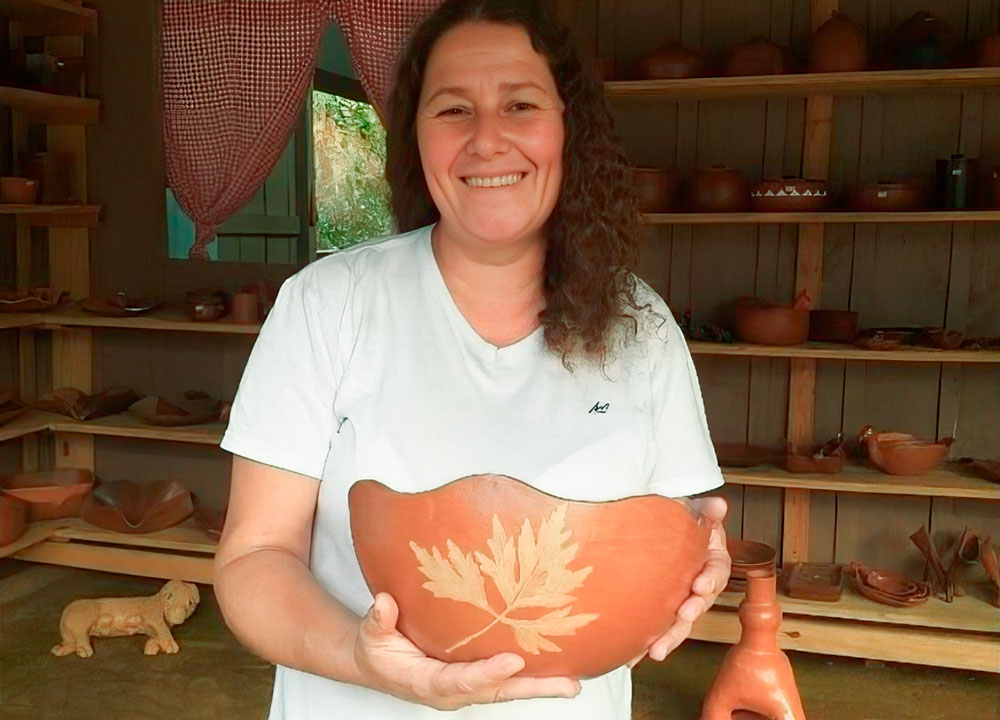 Moldar o barro com a força da natureza e imprimir as folhas da nossa mata em peças que carregam histórias e identidades.